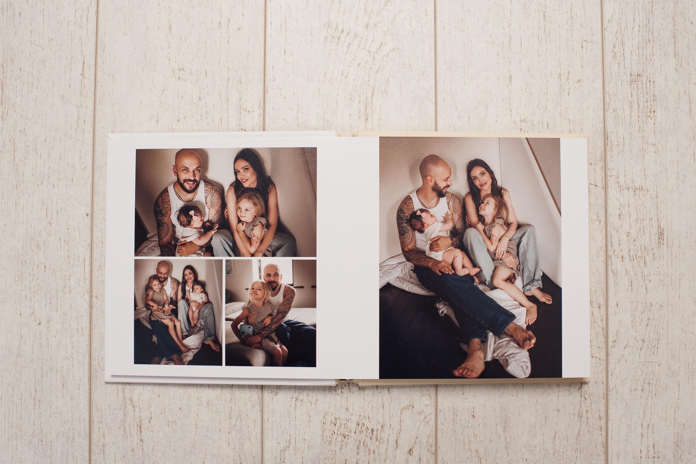 ?Короб для фотокниги: закрыть Короб является практическим и эстетическим дополнением к фотокниге. Все внутренние элементы короба изготовлены из дерева, поэтому он надёжно защищает книгу от механических повреждений и внешних климатических воздействий, тем самым позволяя фотокниге сохранять её первозданный вид на долгие годы. Короб изготавливается индивидуально под каждую фотокнигу в подходящем для комплекта размере и материале. Внутренние стенки отделываются высококачественным переплётным материалом с тканной поверхностью, а для удобного извлечения фотокниги мы вклеиваем атласную ленту. Более детально рассмотреть короб